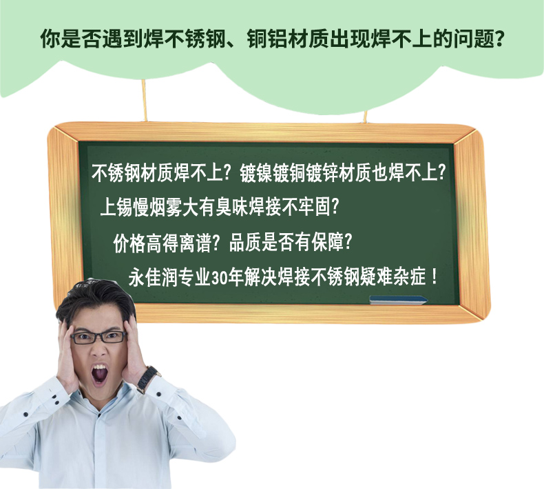 工作溫度:380-420 ℃ 助焊劑含量:不銹鋼專用藥劑
